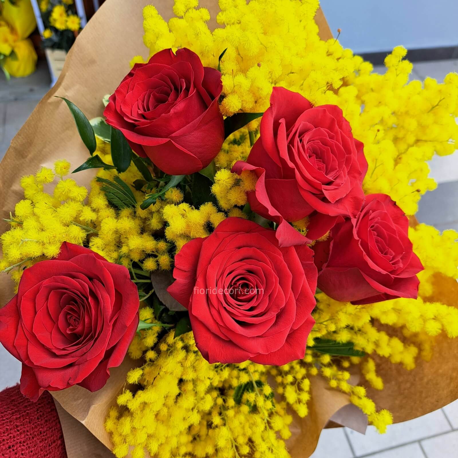 | Bouquet rose rosse con mimosa cod. 84358 | Importo € 35,00 | Num. steli : |